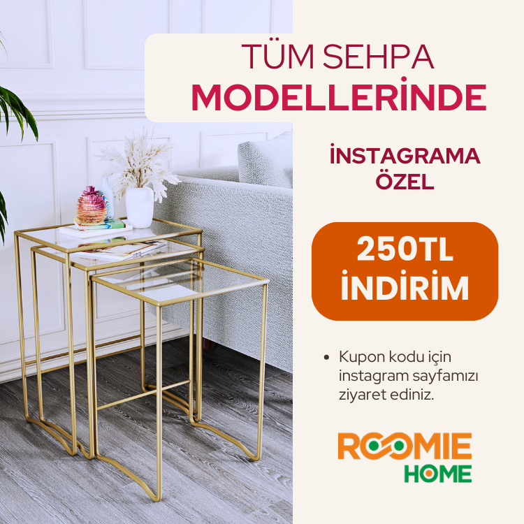 Retro 3 lü Zigon Sehpa, Metal Sehpa, Cam Sehpa, Salon, Yatak Odası, Antre