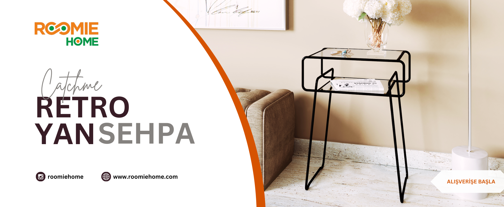 Retro Yan Sehpa, Metal Sehpa, Cam Sehpa, Salon, Yatak Odası, Antre